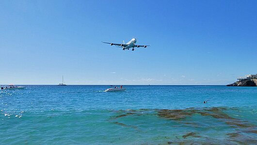 Die Bucht am Maho Beach ist zwar für Segelschiffe gesperrt, darf aber trotzdem bei den Highlights nicht fehlen. Der Maho Beach liegt direkt in Verlängerung der Start- und Landebahn des Princess Juliana Airport. So hat man hier das einmalige Erlebnis, dass die großen Jumbo-Jets nur wenige Meter über dem eigenen Kopf Richtung Landebahn hereinschweben. Durch die Nähe zum Flughafen, lohnt sich auf jeden Fall ein Abstecher hierher, bevor man wieder nach Hause fliegt.